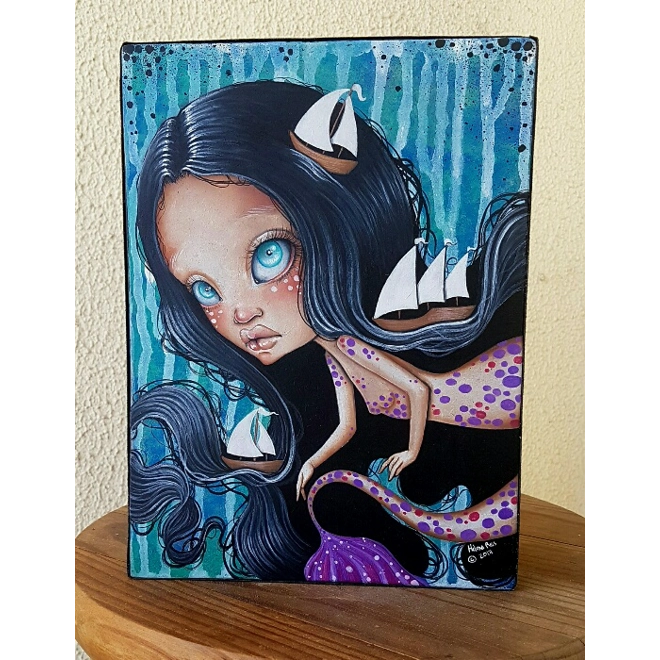 Medium: Watercolour Pencils, Gouache and Acrylic on Handmade Wooden Cradle with Black Velvet Trim