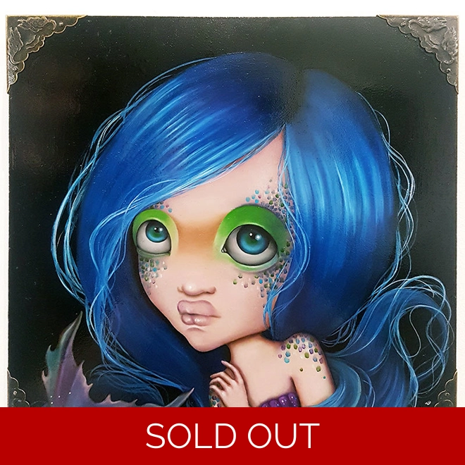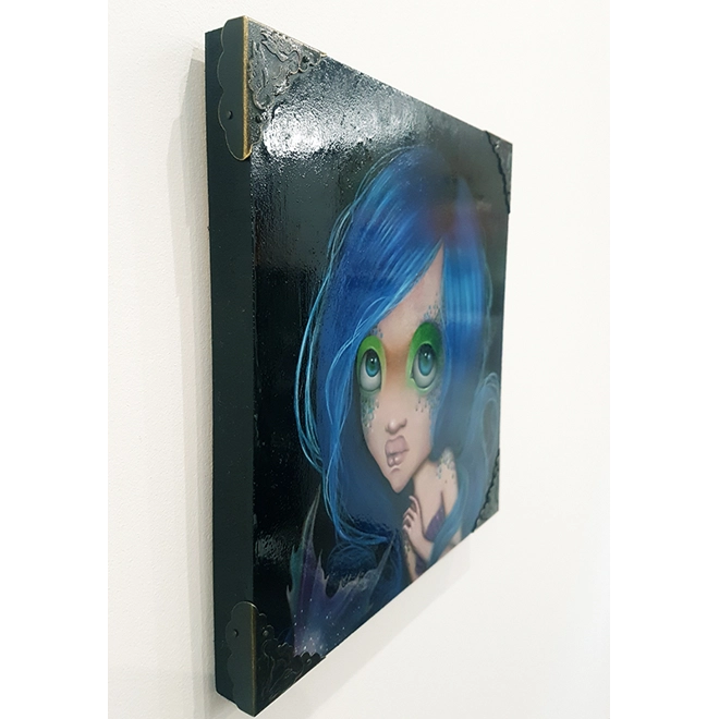 "Mermaid" was created with oil on MDF panel and measures 23x23x 2 cm / 9x9x0.8 inches.