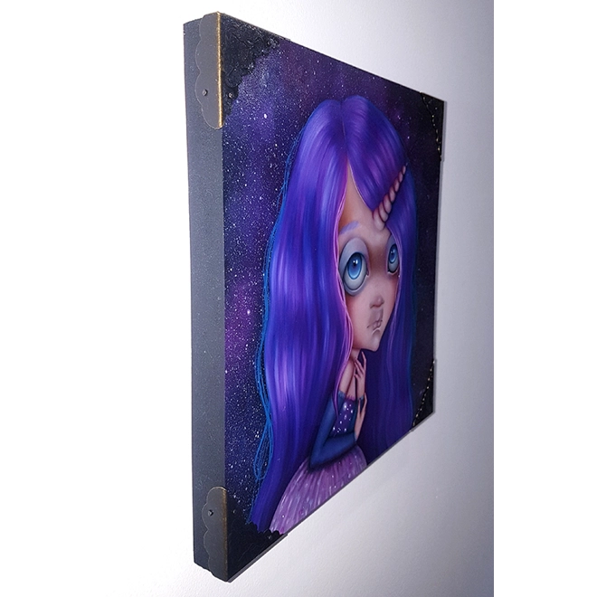 "Unicorn" was created with oil on MDF panel and measures 23x23x 2 cm / 9x9x0.8 inches.